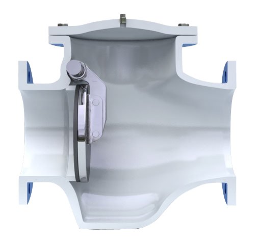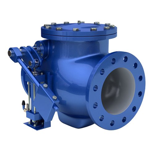 Heavily constructed, exceeds AWWA standards, used on Water or Raw Sewage Pumping Stations. Available with Air Cushion (Fast Closing), or Oil Cushion (Slow Closing) to prevent slam and water hammer. Flow area is full ported and equal to pipe area. All internals easily replaced thru top cover without removing valve from the pipeline. Ratings 125#, 150#, 250#, and 300# class.